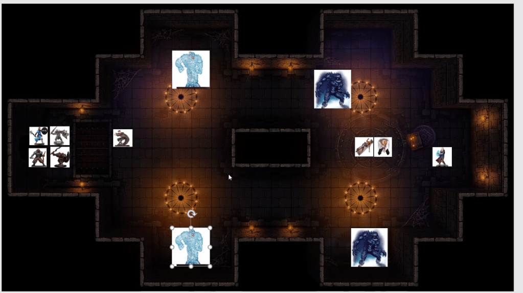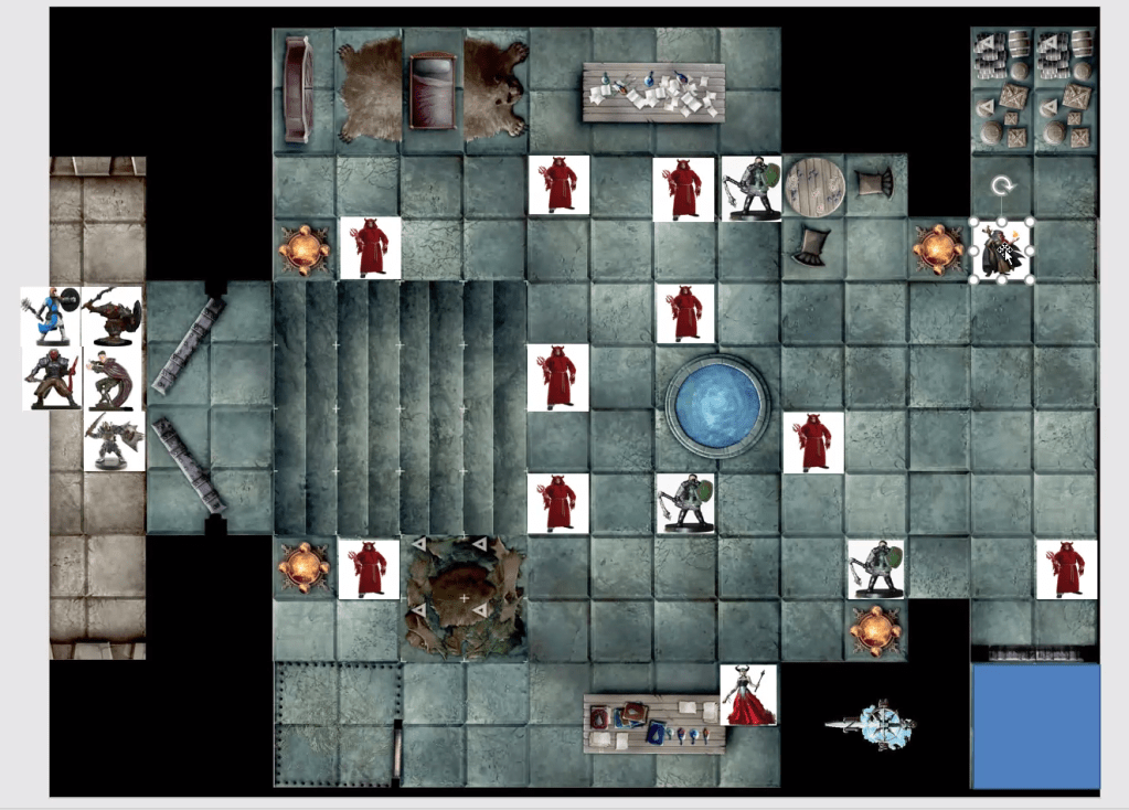 Hurloon råber “I har været tæt nok på at stoppe planer… nu slutter det her…” Hurloon fremkalder tre ekstra Eledrins via Mirror Image. Han rykker frem og kaster et Frost Blast, der giver alle skade.