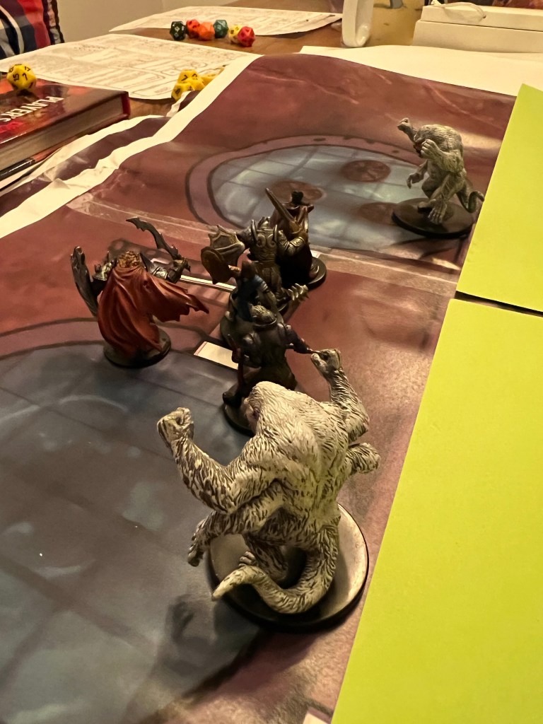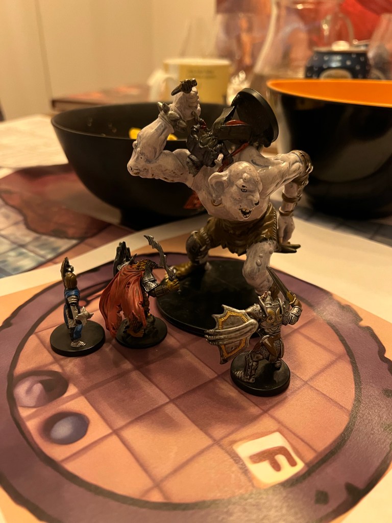 Vi kommer op til en kæmpe satan! BÆSTET! Marc kaster fireball. Vi kæmper en hård kamp. Torben får nogle gode crits ind imens flere får nogle ordentlige hug. Pan bliver fanget af dens tentakler. Marc bliver ramt af dens kæmpe club og grappled. Det holder hårdt, men vi klarer ham.