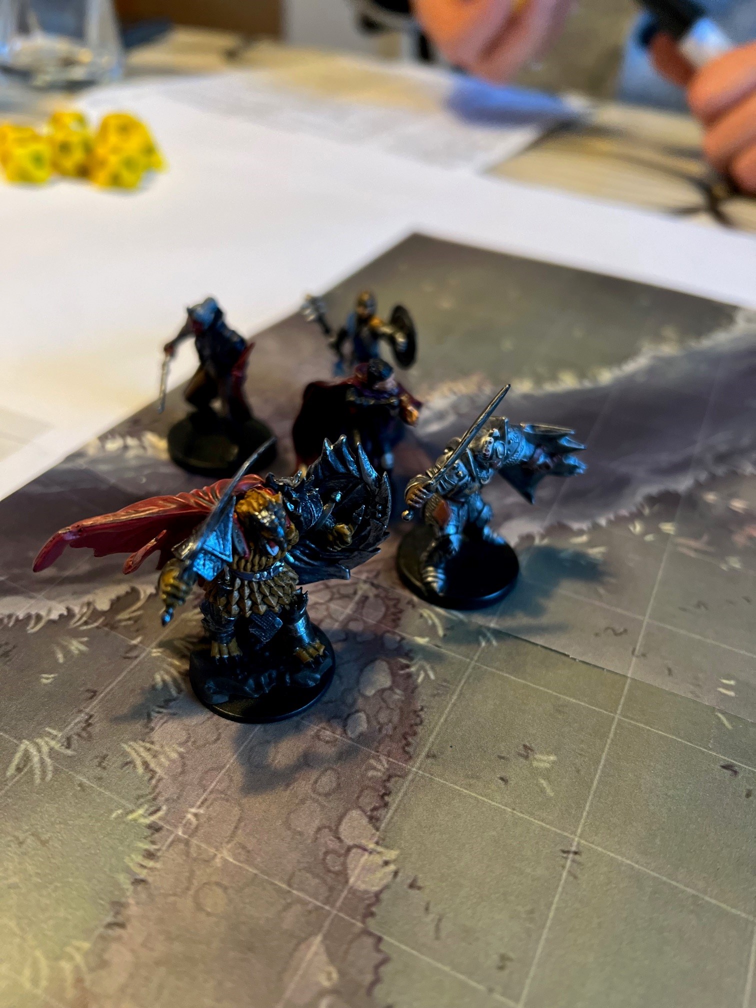 Torben får to gode stabs ind med hans sølv shortsword (en af dem en crit) og han får lederen ned. Monse kaster daggeren i ren John Wick-stil i den varulv der er tættest på Pan. Monse slår den ihjel (!) og redder vores Tiefling (igen igen). Varulven ligger død med daggeren i halsen og Pan har nu chancen for at få sin egen sølvdagger tilbage og begynde at give lidt modstand. Marc kaster sin 4. fireball for aften og rammer 4 varulve.
