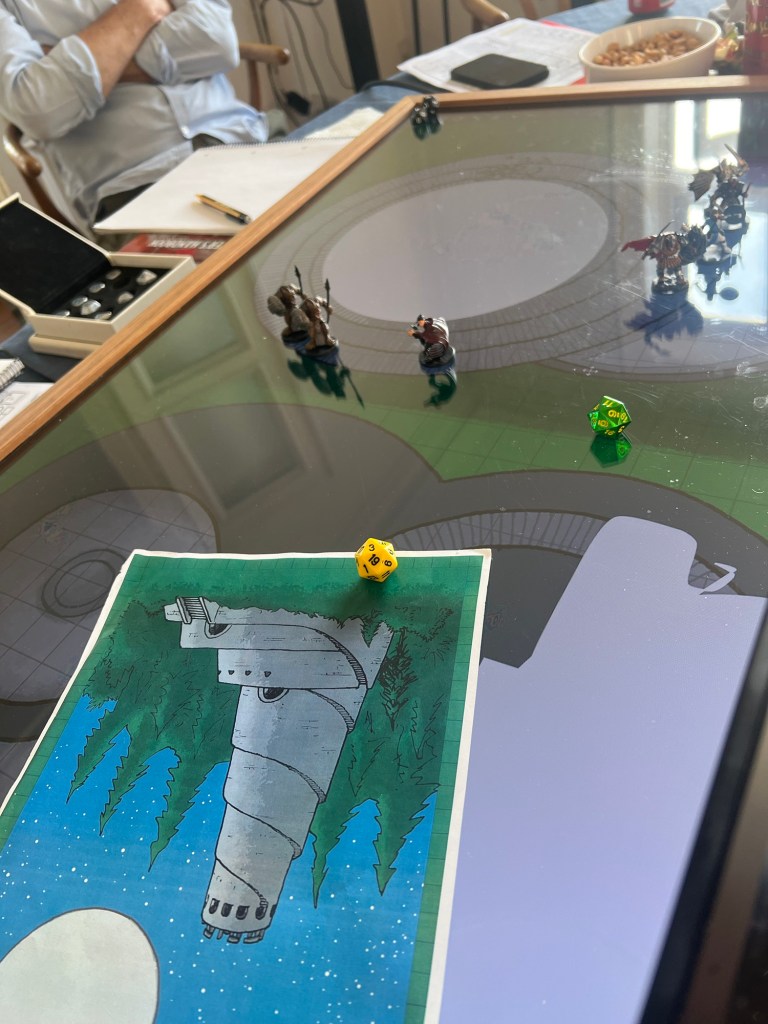 Vi bevæger os op af trappen. D’agger ser at der står 2 vareulve vagter længere oppe. Han sniger sig opad uden at de ser ham. D’agger har bevæget to niveauer op og skyder den bagerste vareulv ned. Vlad lykkedes med at skubbe den anden vareulv ned. Vi begiver os videre. Vi ved at der står 5 vareulve og venter længere oppe. Randal drikker en ‘potion of fly’, flyver ud over kanten for at få et bedre udsyn og kaster en fireball på de 5 vareulve. D’agger skyder en af de 5 bagfra og dræber den. Den falder ned fra tårnet.